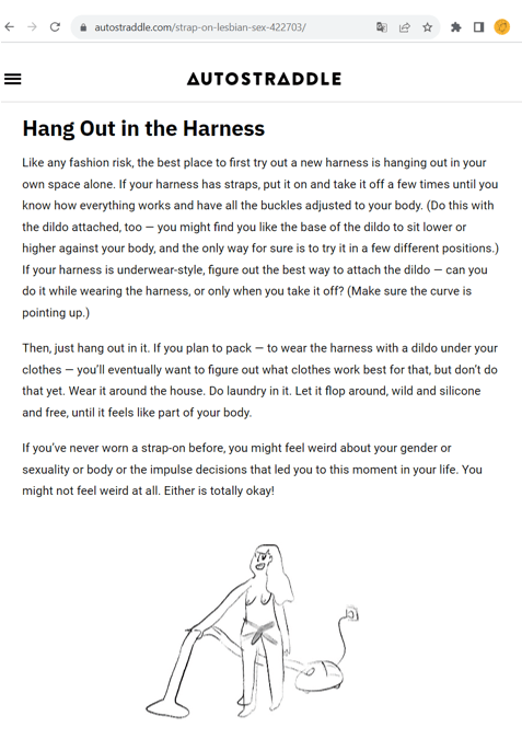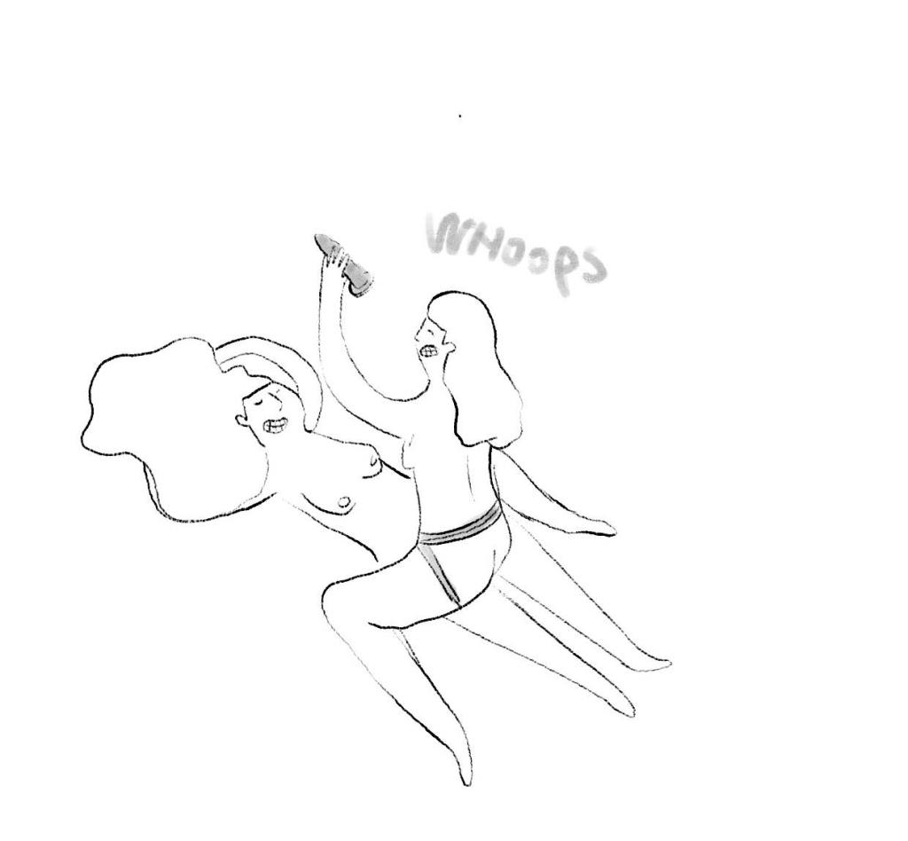 Voor een illustratie cursus van University of Arts in Londen was het de opdracht om een artikel te illustreren, voor een hoofd illustratie en een spot illustratie in de tekst. Ik koos voor het artikel van autostraddle over strap-on seks, waarbij het over de mogelijke klungeligheden de bij strap-on sex ging.
